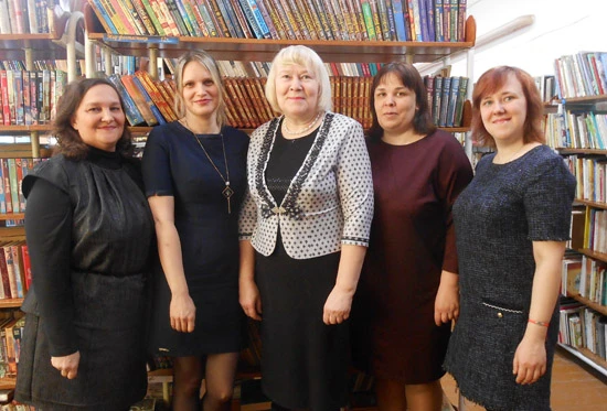 Гусева Евгения Сергеевна (главный библиотекарь), Пермякова Нина Николаевна (заведующая сектором по информационной работе), Пуголовкина Наталья Александровна (библиотекарь), Сарабанская Людмила Анатольевна (заведующая библиотекой), Серяк Марина Юрьевна (ведущий библиотекарь).
