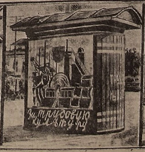 Вот киоск Госиздата, изображающий книгу стоймя.