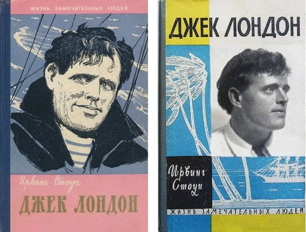 В год презентации, как бы сейчас сказали, нового фирменного стиля Арндт сделал 8 обложек, в том числе для биографий Циолковского, Дюма, Достоевского. Была среди них и обложка с Джеком Лондоном, любопытно, что чуть раньше художник оформлял биографию того же писателя, но в старом дизайне. Автор «Морского волка» на нарисованном оригинальном портрете был изображен с задушевной улыбкой в виде бывалого морячка.